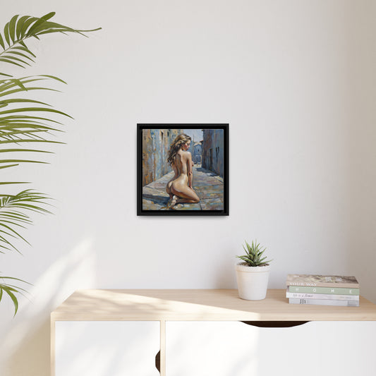 Contemplative Beauty in Old Town, Modern Figurative Art Canvas, Urban Elegance Nude Painting, Expressive Female Form Wall Decor