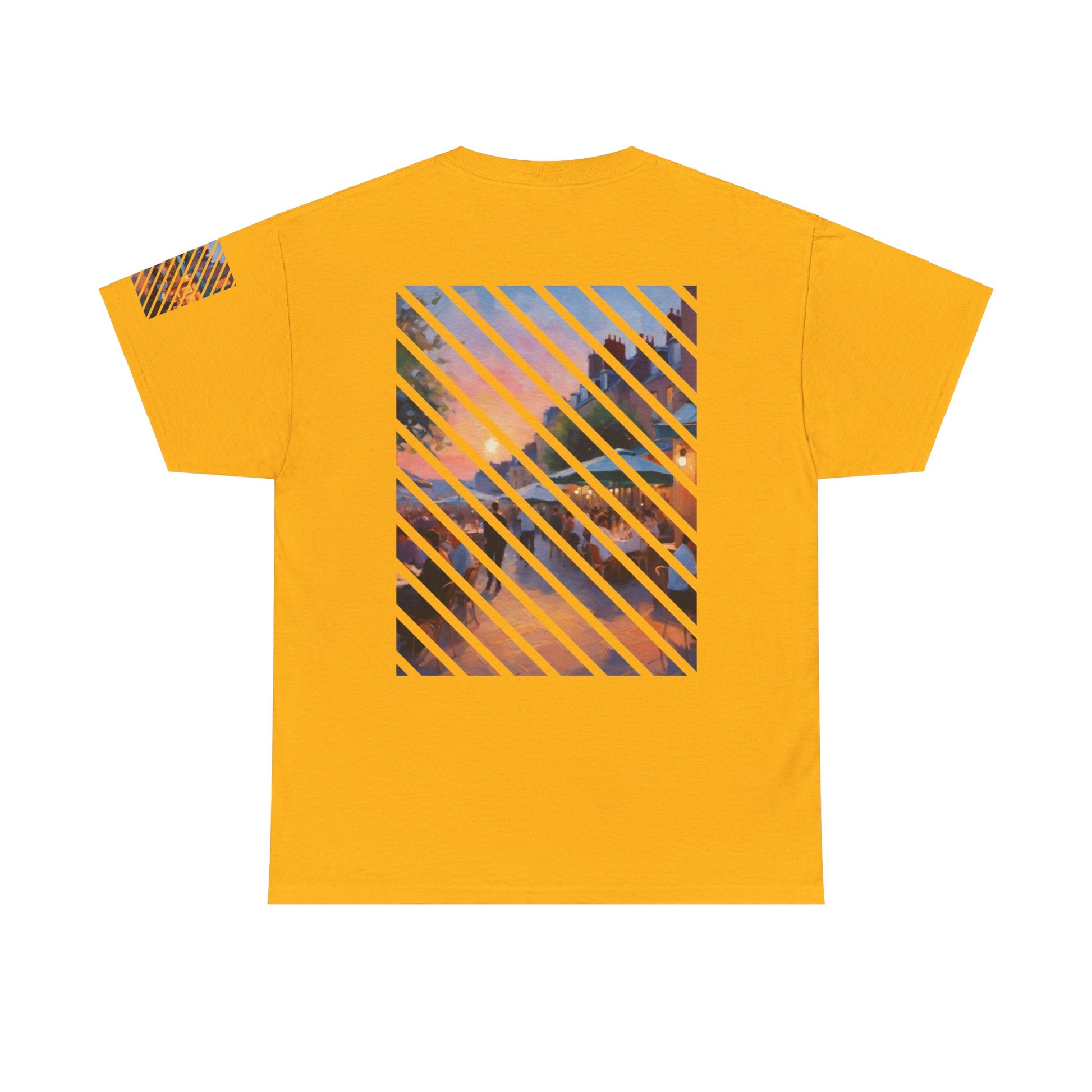 Transport yourself to a relaxing Parisian evening with this cozy café painting printed on a super soft cotton tee. The glow of the lights, couples chatting at their tables, and rosy sunset hues capture the laidback spirit of dining al fresco in the City of Light. This comfortable unisex t-shirt will whisk you away to a little slice of Parisian paradise anytime. Made in the USA from 100% ethically sourced cotton.