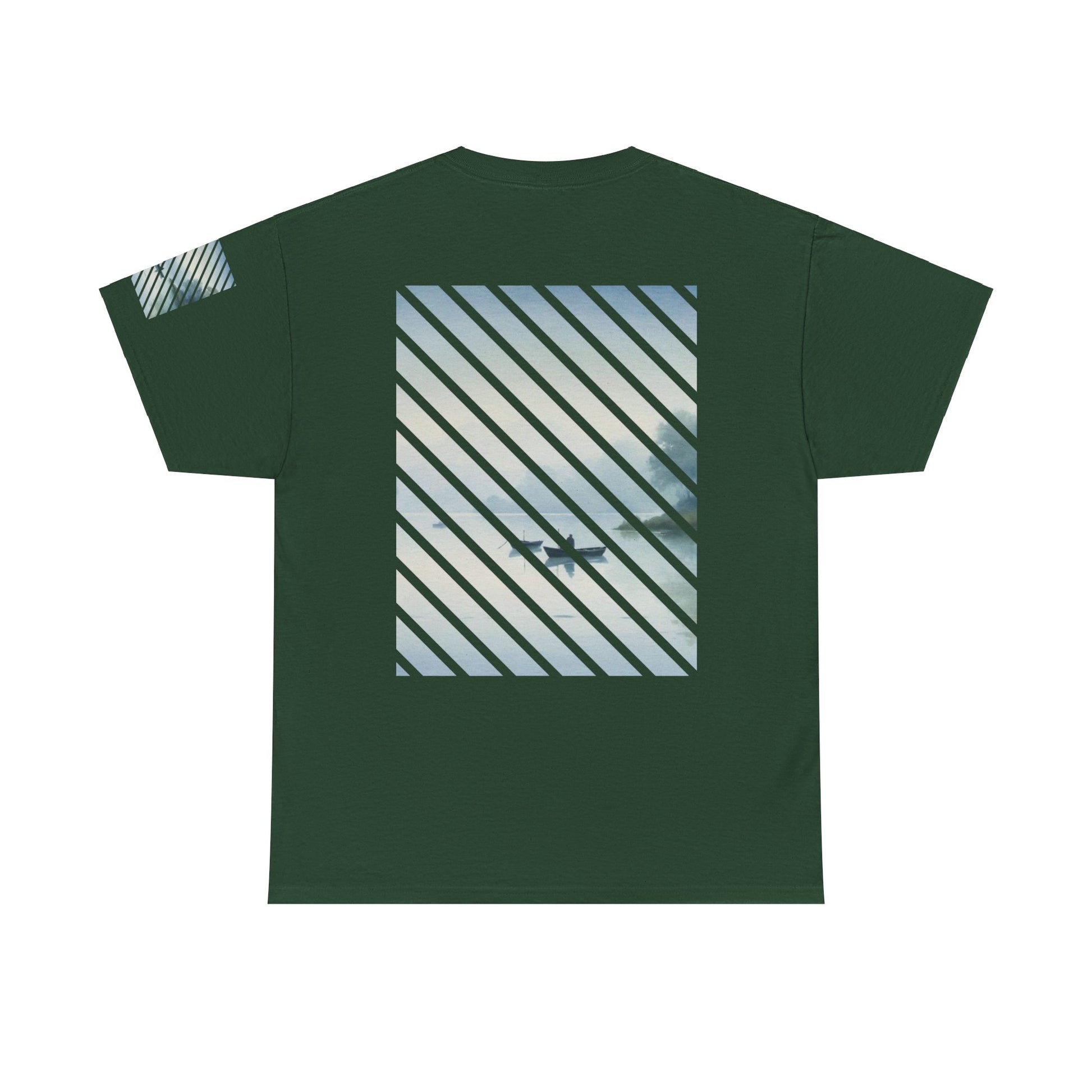 Find serenity in the soft glow of an early morning lake scene printed on this super soft cotton tee. The lone rower gliding through the gentle mist captures a moment of peaceful solitude in nature's embrace. This comfortable unisex t-shirt invites you to appreciate the simple beauty of a tranquil setting. Made in the USA from 100% ethically sourced cotton.