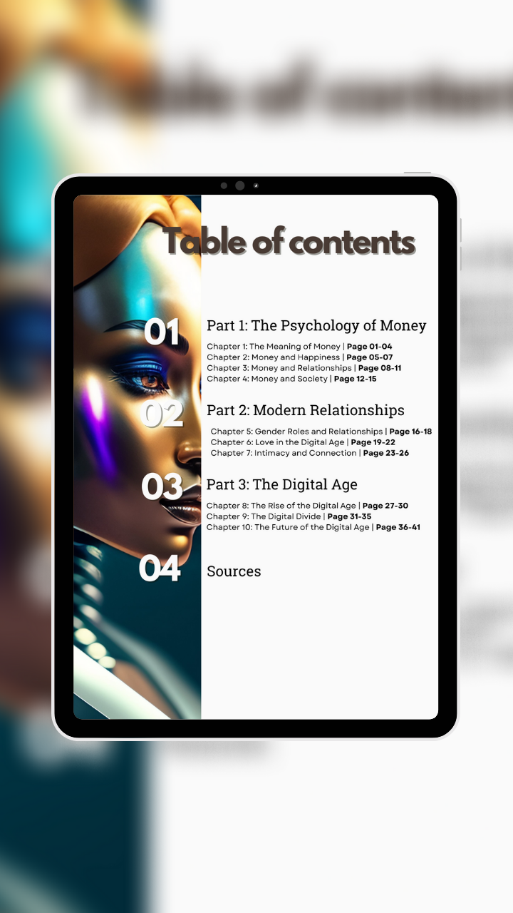 "Money, Girls, and Digital: A Psychological Exploration of Modern Relationships" is a book that explores the complex interplay between money, romance, and technology through a psychological lens, providing readers with a deeper understanding of their own experiences and the larger social and cultural forces that shape them.