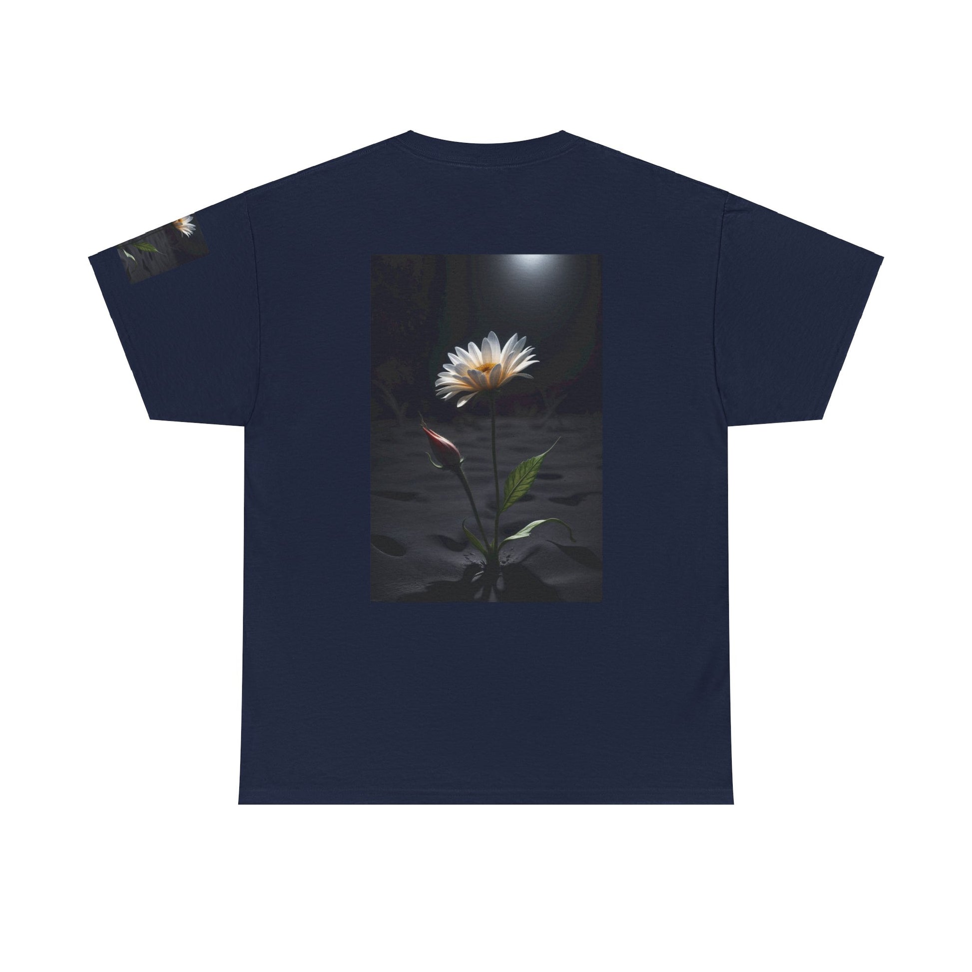 "The White Daisy" blossoms on this soft, comfortable tee. A lone white daisy, its petals like spun moonlight, dances against a backdrop of earthy browns. A vibrant yellow heart peeks out, capturing the essence of summer sunshine. This simple yet profound design is a reminder to find beauty in the everyday, a silent melody painted on the canvas of the earth. Available in various colors and a relaxed, unisex fit. Made in the USA from ethically sourced cotton.